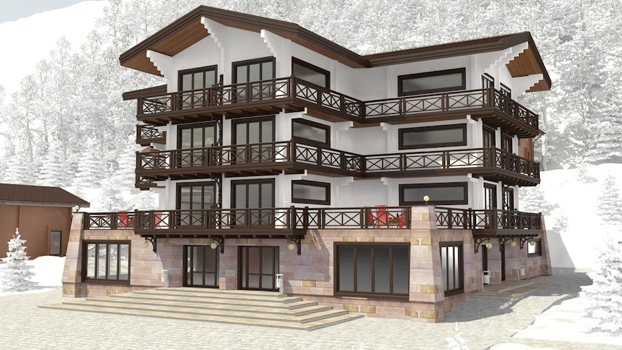 Designing of wooden hotels and recreation centers, camping from timber, glued beam and logs, sale of ready projects.