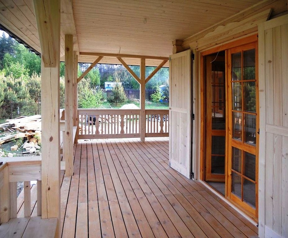 Look more: Category single-storey houses Number of bedrooms 2 Wall material rounded log of natural humidity Particularities house with a terrace We speak English, German, Turkish, French and Russian +375298-06-05-67 -- WhatsApp, Telegram, Viber Look more: Wooden house made of glued laminated timber "White House"Look more:You can see a video-review of the wooden house "Mirage":Wooden house "Mirage" from profiled glued timber 99m2If you want to buy wooden house plans: French wooden home "Achille" 130 m² , you can: