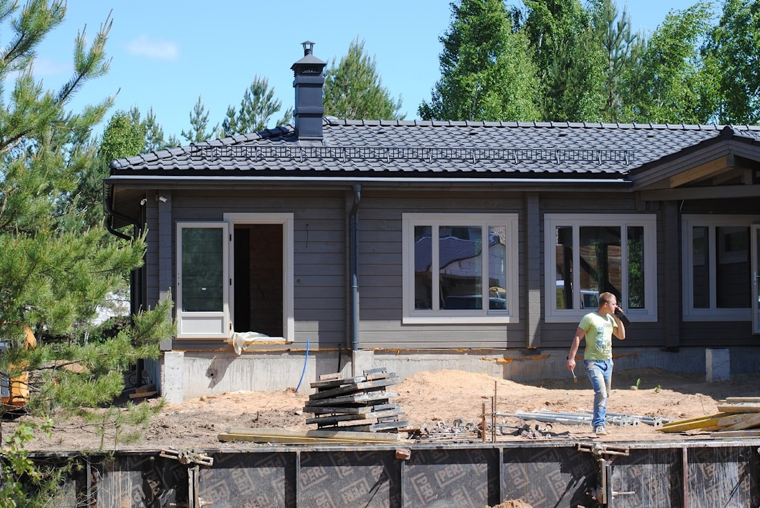 total area 200 square meters Building out of timber: wooden house "Arento" This fashionable wooden house is designed by a team of our professional designers and architects. 1-storeyed house made of logs includes four large bedrooms, a huge living room, a spacious kitchen and two gorgeous terraces. Also, there is an option to make a sauna inside. Making this house model more convenient for people, our architects embedded a carport in the project. The carport will protect your vehicle from rain and snow in winter, and from the heat during hot summer days. The house is designed for a big family and freely allows accommodating of a large group of people. It has two entrances from one side, and additional one from the other side of this marvelous house. There is no terrace, but it doesn’t matter, you can arrange the place for spending time outdoors yourself! Fro example, you can place chairs and coffee table right on the lawn. No doubt, the house will win your heart ones you get inside! As a construction material, we always offer our clients glulam. Using of glued laminated timber gives very important characteristics to the house: timber does not crack cause of changes of humidity; the house itself does not shrink; the walls have high thermal insulation properties, allowing you to spend less money on heating system compared to houses built of other materials. This also contributes to the German technology. Moisture does not penetrate inside the space between the beams, therefore the walls do not freeze, and the house remains warm even during the most severe winters.